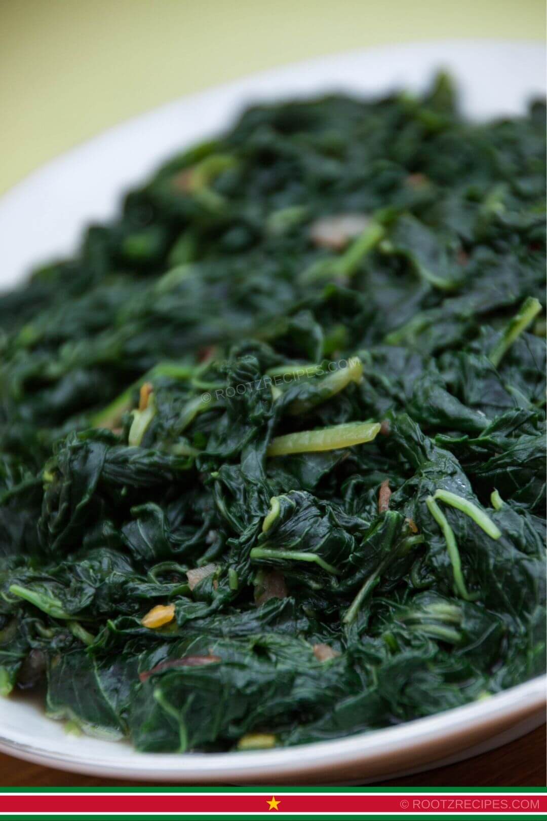 Klaroen is one of my favorite Surinamese vegetables. The vegetable also known as Chinese Spinach in English. Klaroen is similar to spinach and it has a mild spinach like flavor. Just like spinach, you can prepare it in several ways. The recipe I’m sharing with you today is a simple stir fried version which you can eat with your meal.